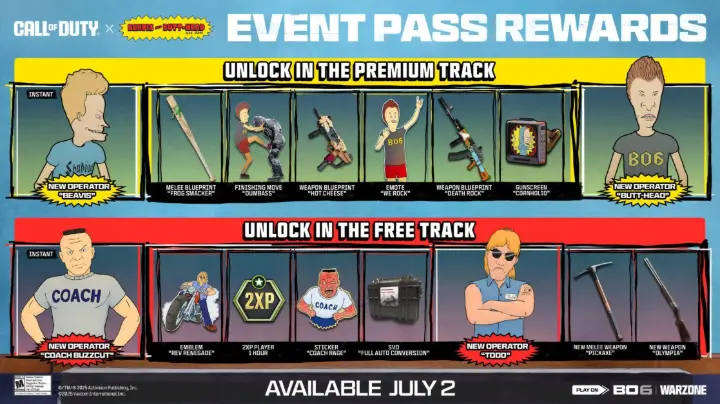 Sí, vas a poder eliminar a tus oponentes en Warzone o en multijugador mientras Butt-Head grita: "Heh heh... you suck!" y Beavis entra en modo Cornholio. El paquete también trae: