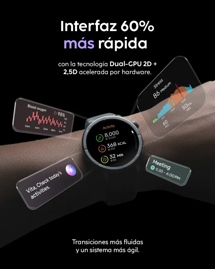 Si su meta para el próximo año es ponerse en forma o simplemente quieren un gadget que les siga el ritmo, tienen que chequear esto. La gran novedad es la integración de VITA AI, un asistente inteligente diseñado para darte apoyo personalizado, mejores análisis de salud y control por voz. Básicamente, es tecnología, bienestar y diseño en un solo paquete.