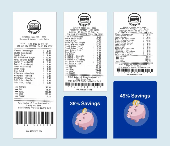 Las impresoras de punto de venta de Epson incorporan una tecnología patentada que puede reducir el uso de papel hasta en un 49%* en cada ticket. Este porcentaje se traduce directamente en ahorros significativos para las empresas. Esta funcionalidad, disponible en una amplia gama de modelos de impresoras POS de Epson1, se activa de forma sencilla a través de configuraciones intuitivas desde las propias impresoras.
